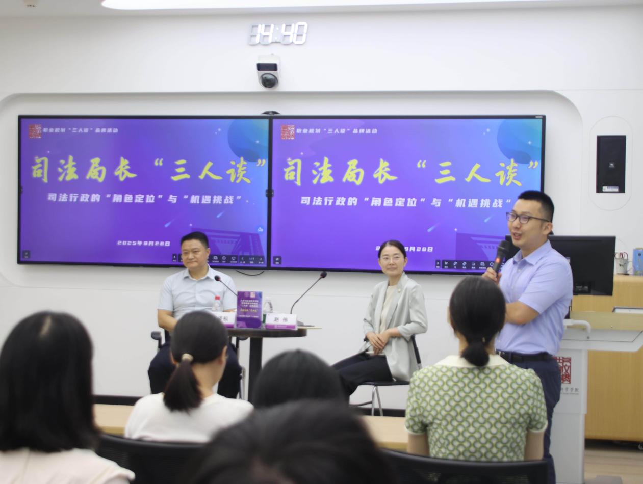 为帮助人文学子增强专业认知,明晰司法行政领域职业方向,科学规划未来发展,9月28日,我院在院楼213智慧教室开展职业规划“三人谈”品牌活动。南京市浦口区司法局党组书记聂济松、江宁区司法局副局长赵伟受邀到场,结合一线工作经验解读司法行政的“角色定位”与“机遇挑战”,并与同学们进行互动交流。活动由法律系副主任陈苏豪主持。