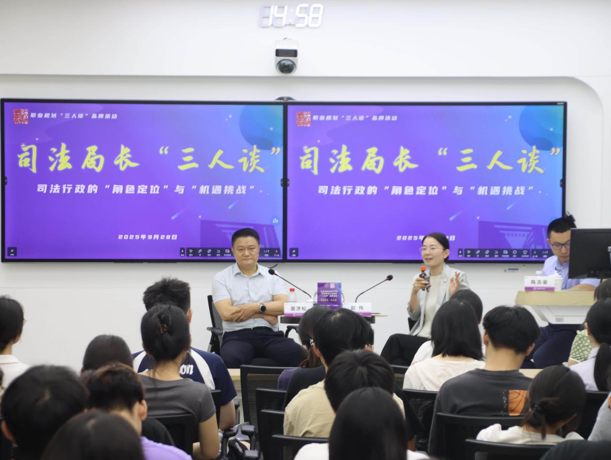 职业规划“三人谈”品牌活动是我院打造的连接校园与职场的重要桥梁纽带,是专业课堂的有效延伸。后续,我院将继续邀请政法系统、律所、企业等领域的职场精英,围绕更多主题开展交流,帮助学子打通“从校园到职场”的认知壁垒,让职业规划更有方向、求职之路更有底气。(文:施俞辛;图:程倩)