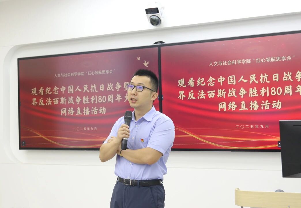 9月3日上午,我院组织教师、学生党员和入党积极分子开展“红心领航思享会”,通过“主题微党课+观看纪念中国人民抗日战争暨世界反法西斯战争胜利80周年大会网络直播活动”的形式,重温抗战历史、感悟初心使命,让伟大抗战精神在新时代焕发新活力。