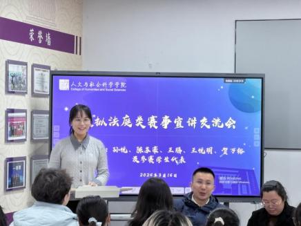 为帮助同学们了解模拟法庭竞赛等赛事情况,提升专业实践能力,3月17日中午,我院模拟法庭类赛事宣讲交流会在湖畔人文“一站式”学生社区顺利举行。学院特邀近期在多项模拟法庭赛事中获奖的指导老师及参赛代表分享交流,围绕赛事类型、备赛经验等话题展开交流,吸引了不同年级和专业的同学参与。交流会由法律系副主任陈苏豪主持。